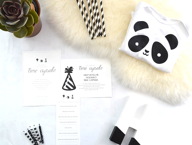 All these keepsakes can be stored in a Box. Guest blogger Kirsten Yanicki shares her experience using our Time Capsule Free Printables for her sons Panda Themed First Birthday. Download your editable time capsule free printables to use for your special celebration.